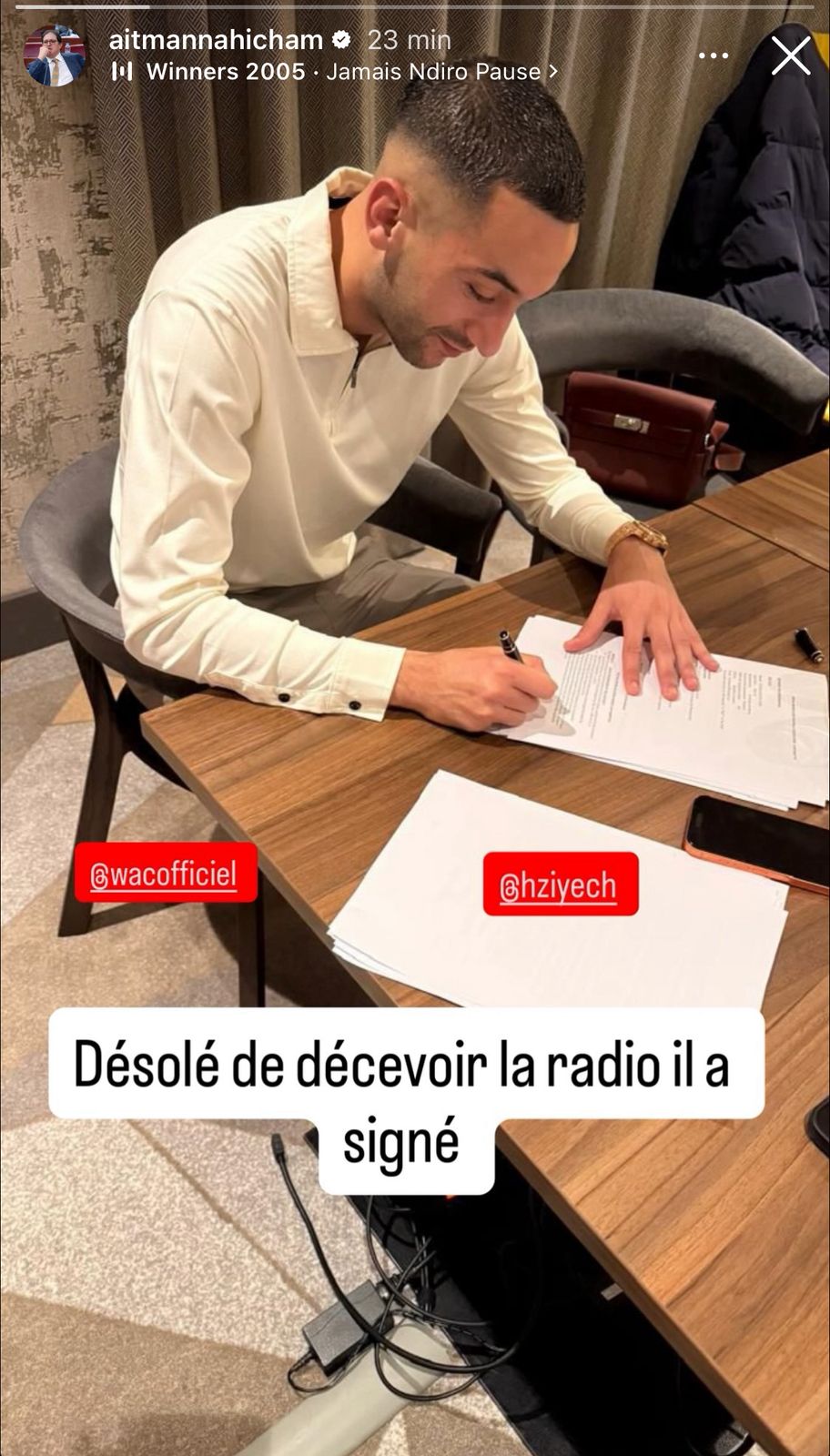 وعلق آيت منا على الصورة بتصريح أثار الجدل، قائلاً: “آسف لإحباط الإذاعة، لقد وقّع”، في رسالة واضحة للمشككين في إتمام الصفقة، وهو ما اعتبره عدد من متابعي الفريق تحدياً ساخرًا للمنتقدين، ويؤكد حسم المفاوضات بين الطرفين.