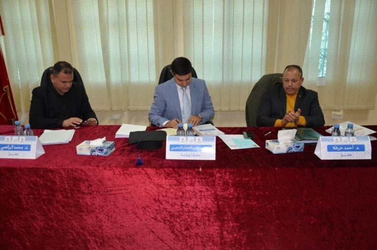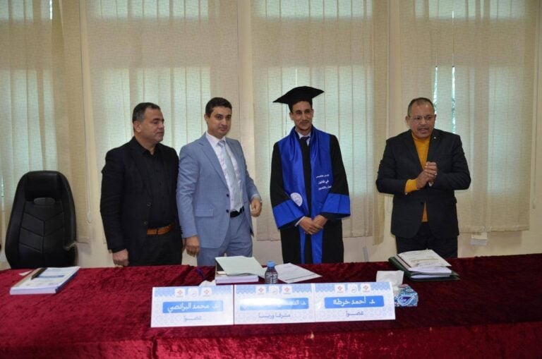 وشهدت الجلسة نقاشًا علميًا رصينًا امتد لأزيد من ساعتين، أبدت خلاله لجنة المناقشة إعجابها بموضوع الرسالة وبمنهجية معالجتها، كما قدّمت ملاحظات علمية هادفة وإضافات غنية طُلب من الطالب أخذها بعين الاعتبار. وفي ختام المداولات، قررت اللجنة قبول الرسالة، ومنح الطالب نقطة مشرفة بلغت 18/20 مع التوصية بالنشر.
