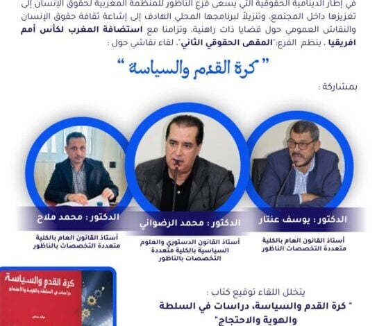 Home/آخر الأخبار/الناظور : اعلان عن لقاء نقاشي حول ” كرة القدم والسياسة ” يوم الجمعة+البرنامج الناظور : اعلان عن لقاء نقاشي حول ” كرة القدم والسياسة ” يوم الجمعة+البرنامج آخر تحديث 09/01/20260 أقل من دقيقة Facebook X LinkedIn Tumblr Pinterest Reddit VKontakte Odnoklassniki Pocket آخر تحديث 09/01/20260 أقل من دقيقة Facebook X LinkedIn Tumblr Pinterest Reddit VKontakte Odnoklassniki Pocket شارك Facebook X LinkedIn Tumblr Pinterest Reddit VKontakte Odnoklassniki Pocket شارك عبر البريد الإلكتروني إطبع
